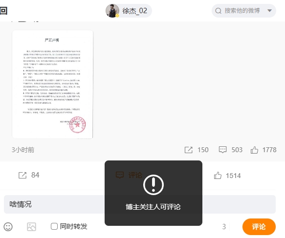 186体育08月10日讯 近日,微博女网友@FreeFree_被耍版发布长文曝广东男篮后卫徐杰YP多人,出轨劈腿导致多人打胎,甚至因赌球有几百万负债。今天中午,徐杰经纪公司发布严正声明,徐杰本人社媒转发。 徐杰因这一风波频频登上微博热搜。有网友发现,徐杰的个人社媒开启了防护模式,其微博是仅博主关注人可评论,dy则是不可评论。 相关内容: 指控升级!第3位女网友长文爆料徐杰YP多次致人打胎&有几百万负债 被实名举报!网友晒视频曝徐杰赌球欠数百万赌债 已抵押名下车房 徐杰YP多人+出轨+赌球负巨债?经纪公司:恶意虚构 纯属造谣&诽谤