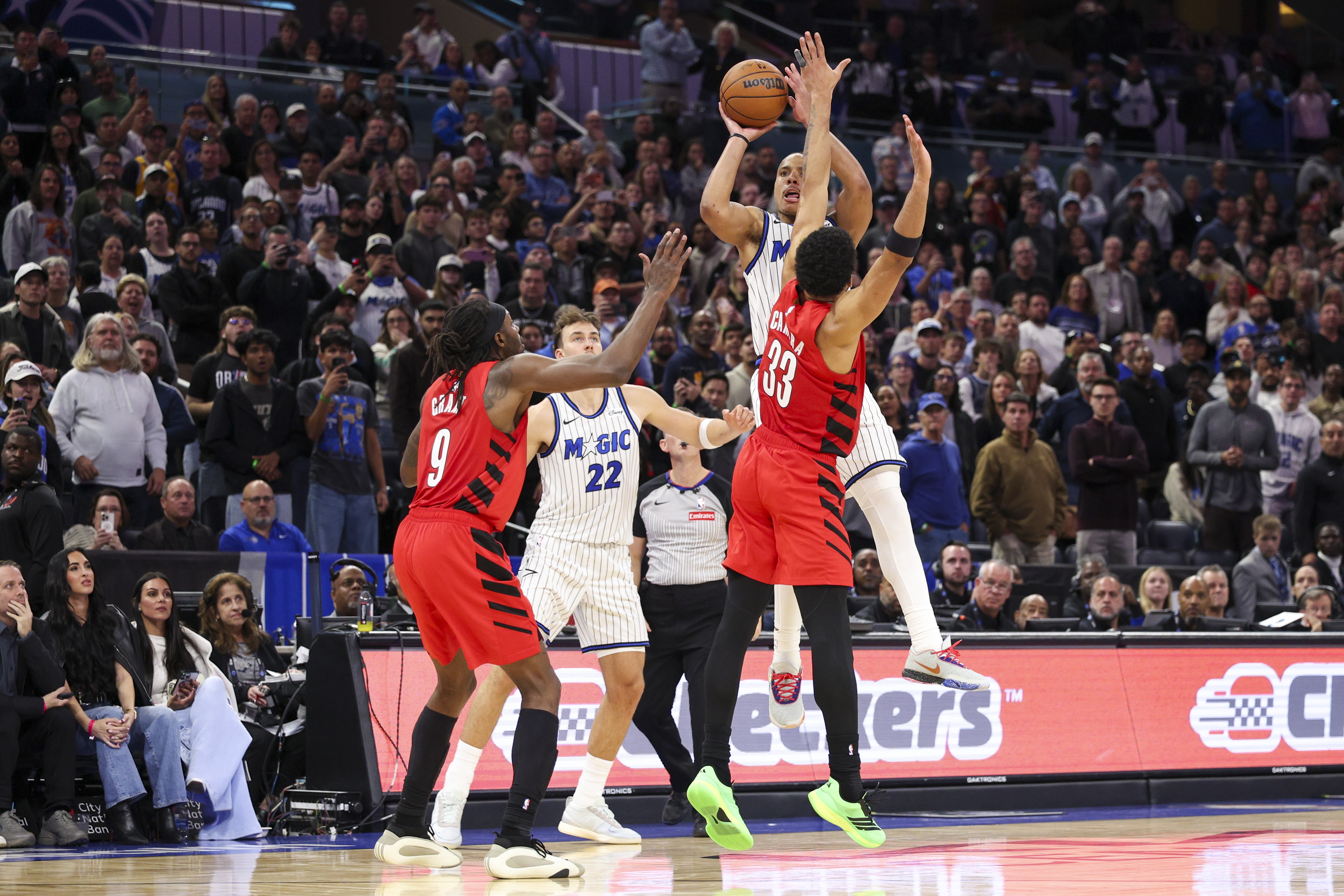 在今日的NBA常规赛中,凭借着武切维奇压哨三分绝杀,公牛客场122-121险胜开拓者。 绝杀是篮球场上最扣人心弦的情节,而本赛季开始至今,已经出现了许多压哨绝杀的场面,今天老震来带大家一起回顾一下,本赛季的那些压哨绝杀: 里夫斯钻过人缝抛投压哨绝杀森林狼 2025年10月30日,湖人客场116-115险胜森林狼,比赛最后时刻,里夫斯钻过麦丹和戈贝尔的人缝,迎着迪文岑佐完成抛投压哨绝杀。 莱昂纳德点飞两人中距离压哨绝杀鹈鹕 2025年11月1日,快船主场126-124战胜鹈鹕,莱昂纳德在比赛最后3秒左侧突破,点飞费尔斯和萨迪克·贝的防守后,命中中投压哨绝杀。 字母哥翻身后仰中投压哨绝杀 2025年11月4日,雄鹿客场117-115战胜步行者,字母哥在比赛最后时刻迎着内史密斯和以赛亚·杰克逊的防守,翻身后仰跳投命中压哨绝杀。 贝恩接球高难度漂移三分绝杀开拓者 2025年11月11日,魔术主场115-112战胜开拓者,贝恩在1.9秒接球,面对卡马拉投出漂移三分,一箭穿心完成压哨绝杀。 维金斯0.4秒极限空接扣篮绝杀骑士 2025年11月11日,热火主场加时140-138战胜骑士,加时赛最后0.4秒,米切尔命中底角高难度准绝平三分;随后热火前场开球,跑出了一个完美的界外球空接战术,维金斯长驱直入空接完成压哨绝杀。 武切维奇接球三分压哨绝杀开拓者 2025年11月20日,公牛客场122-121战胜开拓者,比赛最后时刻,科比·怀特突破到禁区后突分外线的武切维奇,后者接球出手命中压哨绝杀三分,一剑封喉。
